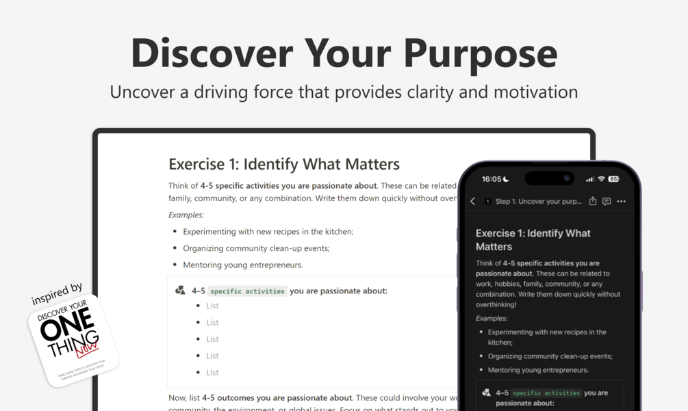 Use this template to uncover a driving force that provides clarity and motivation β your purpose! β¨